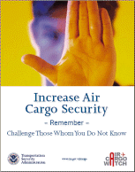 Our goal is securing ALL cargo. We do not discriminate between air and surface shipments, as EVERY shipment is important to us. Any suspicious activity on your loading dock or in transit needs to be reported. If you are interested in partnering with Premier Express and the TSA Air Cargo Watch Program contact Dale Massicotte 860.925.6292 x302 or Angelo Forestiere x304.